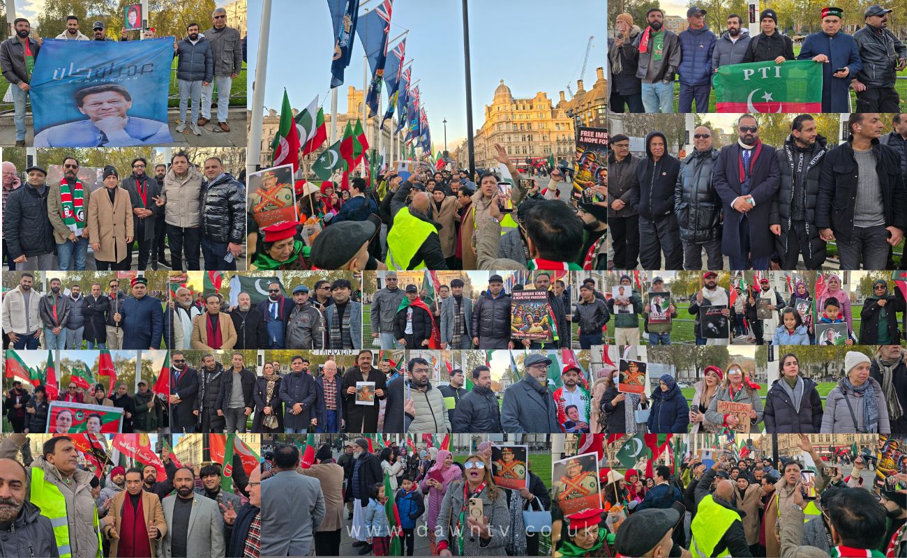 Daily Dawn/ Dawn TV Report, Photos: Raja Tariq Mahmood Khan London: A chain-like protest was organized by PTI UK outside…