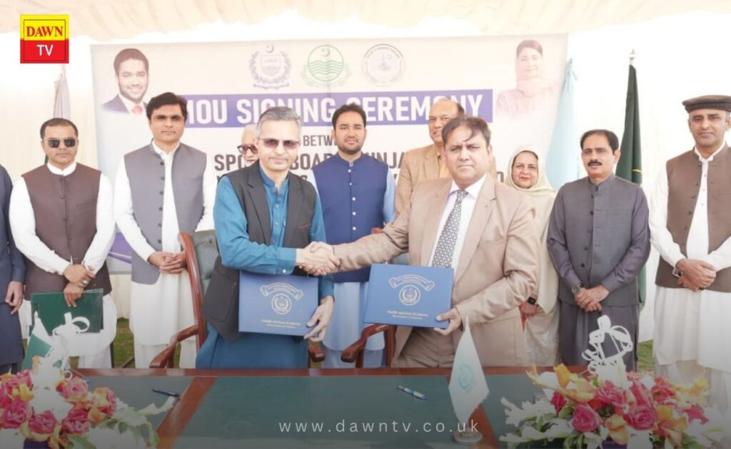 Lahore: An MoU ceremony between the Sports Board Punjab and Health Services Academy Islamabad for modern training of players, coaches, and sports officials was held at Punjab Stadium. Provincial Minister for Sports, Faisal Ayub Khokhar, was the special guest of the ceremony, and Secretary for Sports, Punjab Muhammad Ali, was also present on this occasion. The MoU between the Sports Board Punjab and Health Services Academy was signed by Director Admin Abid Shaukat and Dean of Health Services Academy Dr. Ijaz Asghar, while Secretary Sports Punjab Muhammad Ali and Vice Chancellor Health Services Academy Dr. Shahzad Ali Khan exchanged documents after the signing.